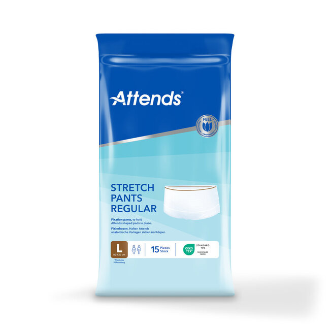 Sicherheit und Komfort, Tag und Nacht. Die Attends Stretchpants Regular Größe L bieten eine zuverlässige Fixierung für Ihre Einlagen. Diese wiederverwendbaren, weichen, atmungsaktiven Oeko-Tex-Hosen minimieren Druckstellen und sorgen für unbeschwerten Tragekomfort. Eine kluge, nachhaltige Investition in Ihr Wohlbefinden. VitAdvice: Ihr Partner für hochwertige Pflege.