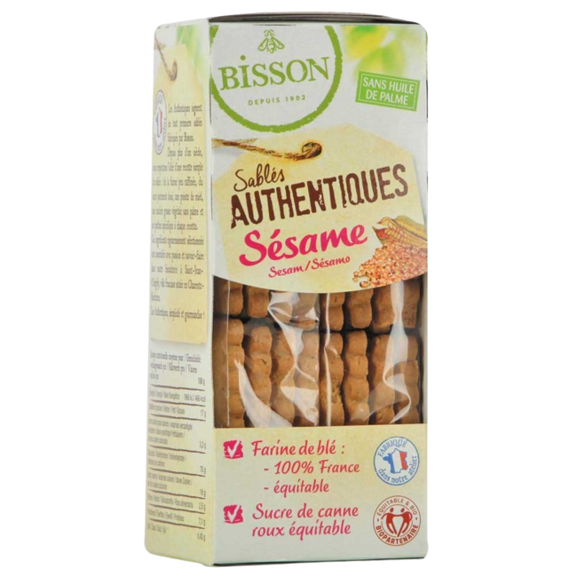 Sind Sie müde von gewöhnlichen Snacks? Entscheiden Sie sich für Bisson Mürbeteigkekse Sesam Authentisch Bio: köstlich knusprige Bio-Kekse mit authentischem Geschmack. Eine verantwortungsvolle Leckerei für die ganze Familie, sorgfältig hergestellt. Ihre bewusste Wahl für einen Moment der Qualität. Probieren Sie sie jetzt.