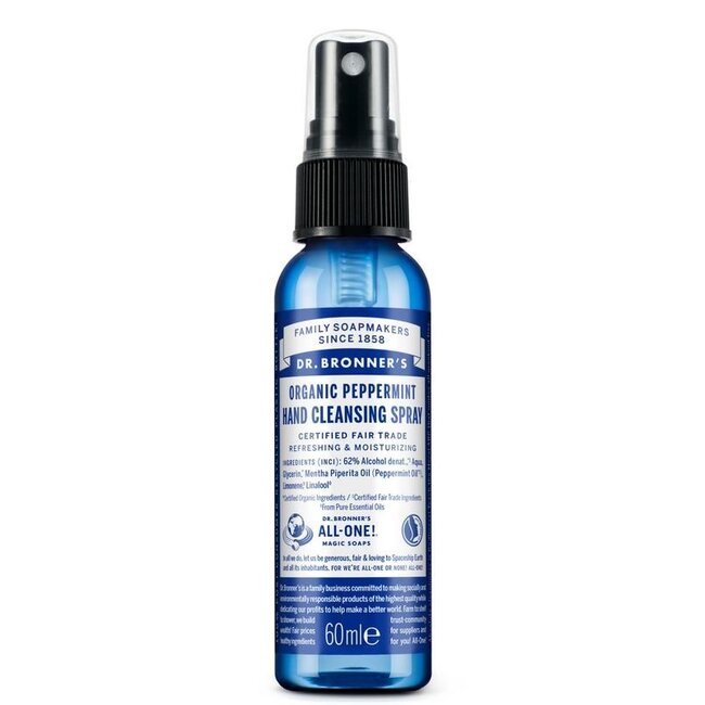 Immer saubere, gepflegte Hände? Dr. Bronner's Pfefferminze Handspray: sofort wirksame, sanfte Hygiene ohne Wasser! Kein klebriges Gefühl. Mit 62 % biologischem Fairtrade-Alkohol und erfrischendem Pfefferminzöl. Von Experten geprüft, für die ganze Familie geeignet. Ihre kluge Wahl für höchste Qualität zu einem fairen Preis.