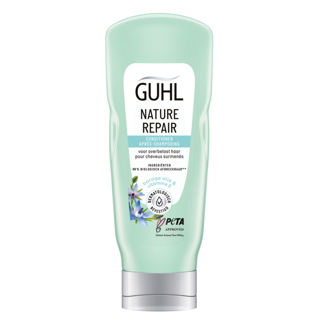 Repariert überbeanspruchtes, geschädigtes Haar tiefenwirksam: die Guhl Nature Repair Spülung mit Borretschöl & Vitamin E. Freuen Sie sich über gesunden Glanz und leichte Kämmbarkeit, ohne das Haar zu beschweren. Vegan und nachhaltig. Die kluge Wahl für Premium-Haarpflege, erhältlich über VitAdvice.