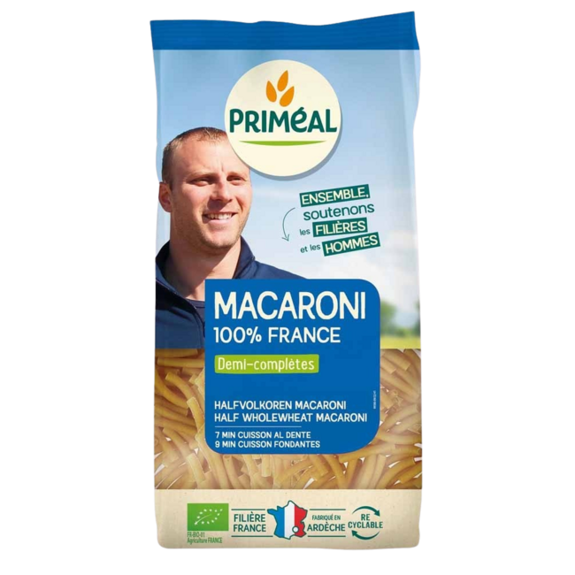 Suchen Sie gesunde, erschwingliche Bio-Pasta? Primeal Halbvollkorn-Makkaroni Bio ist die kluge Wahl für Ihre Familie. Hergestellt aus 100 % biologischem Hartweizengrieß, reich an Ballaststoffen für langanhaltende Energie und in nur 7–9 Minuten fertig. Genießen Sie schnelle, nahrhafte Mahlzeiten mit reinen Zutaten, denen Sie vertrauen. Entscheiden Sie sich für Qualität, Bequemlichkeit und Seelenfrieden am Tisch mit Primeal!
