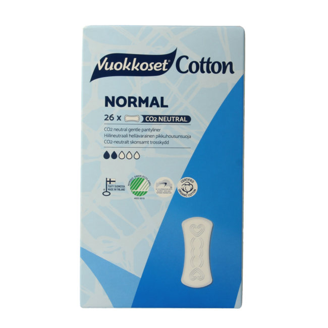 Fühlen Sie sich jeden Tag frisch und wohl. Keine Irritationen mehr dank Vuokkoset Bio-Slipeinlagen: 100 % Bio-Baumwolle, chlorfreie Zellulose. Reiner, atmungsaktiver Schutz. Vollständig kompostierbar, selbst die Verpackung ist biobasiert.