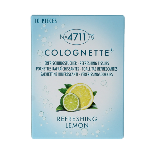 Do you desire instant freshness, wherever you are? No more discomfort after sport, eating, or while on the go. 4711 Lemon Colognettes tissues provide immediate vitality and a clean feeling.