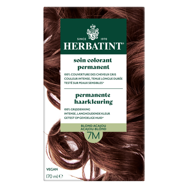 If you are looking for radiant mahogany blonde hair that is both beautiful and nourishing, choose Herbatint 7M Mahogany Blonde, the solution for a vibrant colour and 100% grey coverage. Our ammonia-free formula, enriched with 8 organic herbal extracts, respects your hair structure and scalp. Experience an odourless, gentle application with perfect results in just 40 minutes. Trust in the expertise of VitAdvice for a premium product that supports your choice as a conscious consumer. Enjoy naturally healthy-looking hair and the peace of mind you deserve.