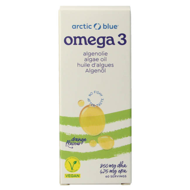 VitAdvice Arctic Blue Algae Oil DHA/EPA: for energy, focus, brain, vision, and heart. 100% vegan with a mild orange flavour, perfect for the whole family. Smart investment: 30% saving and plastic-free shipping. Your responsible choice for vitality. Trust VitAdvice.