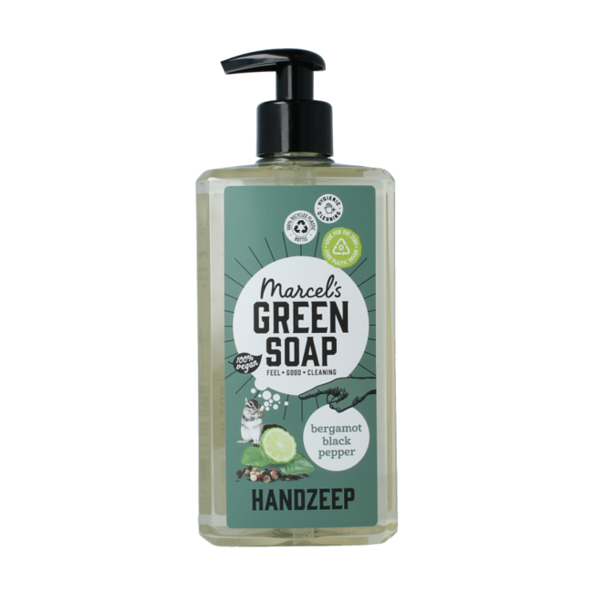 Marcel's Green Soap Bergamot & Black Pepper Hand Soap: Experience mild cleansing and deep hydration. This 97% biodegradable hand soap, with a delightful scent and plant-based glycerine, is the smart, sustainable choice for the whole family. VitAdvice delivers top quality at a fair price, shipped plastic-free. Give your hands comfort and confidence!