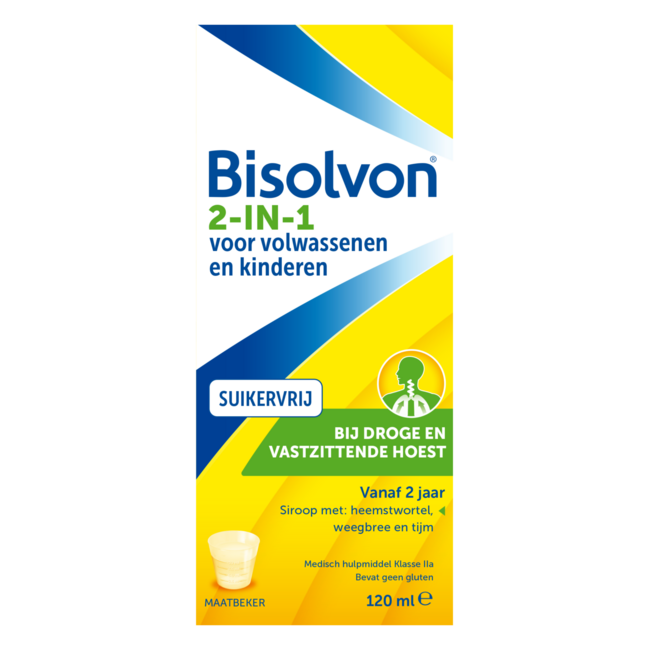 Bisolvon 2-in-1 Sugar-free is a reliable choice for effective cough relief. This 100% natural formula contains no preservatives or dyes and treats both dry and chesty coughs.