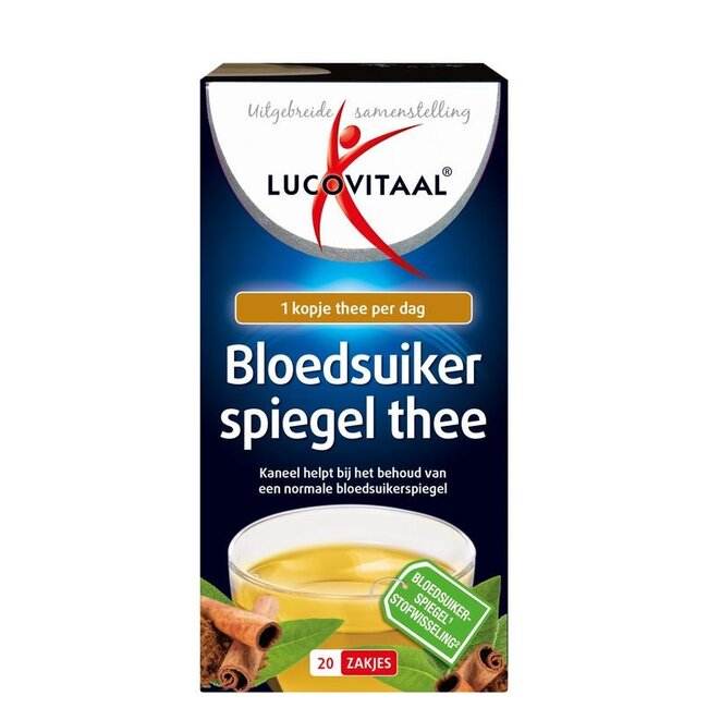 Discover Lucovitaal Blood Sugar Level tea: 20 bags for your vitality. Cinnamon and chromium support normal blood sugar levels and metabolism. Expert-backed and suitable for the whole family. Enjoy premium health with a 30% saving and plastic-free shipping. Choose VitAdvice, your partner for wellbeing and smart choices. Start today!