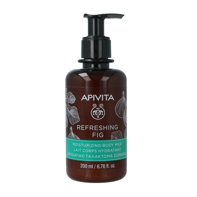 APIVITA Bodymilk refreshing fig Vochtinbrengende lichaamsmelk geïnspireerd op de principes van de aromatherapie, die de huid verzorgt en zacht en licht geparfumeerd achterlaat. Het biedt hydratatie dankzij het vijgenextract, terwijl de essentiële lavendel- en geraniumoliën een rijke en levendige geur geven voor een verhoogde frisheid. Geschikt voor mannen en vrouwen.