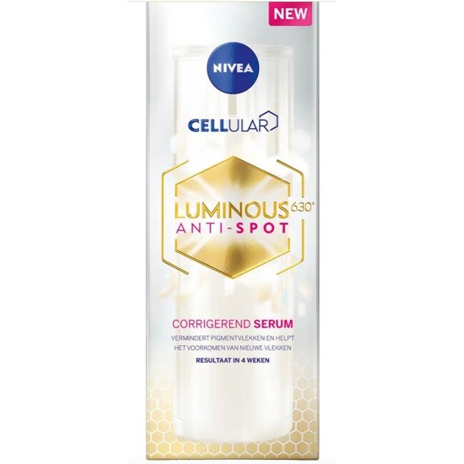Nivea Cellular luminous 630 anti-spot serum NIVEA Cellular Luminous630 Anti-Spot Serum 30ml vermindert vlekken veroorzaakt door zon, ouderdom en hormonale invloeden, zoals zwangerschap en menopauze.