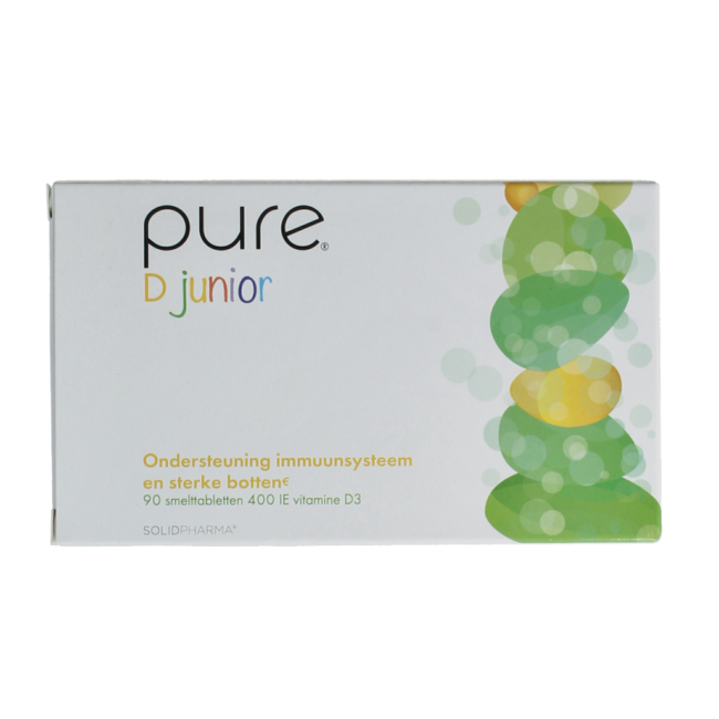 Pure D juniorPure D Junior bevat 400 IE Vitamine D3, dit is de natuurlijke vorm vitamine D, om in overeenstemming met de recentste aanbevelingen aan verhoogde vitamine D behoeftes te voldoen.
