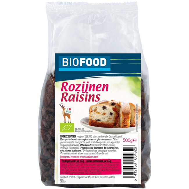 Damhert Organic Raisins provide a natural snack or ingredient for the whole family. These organic raisins are sustainably packaged and offer a source of energy.