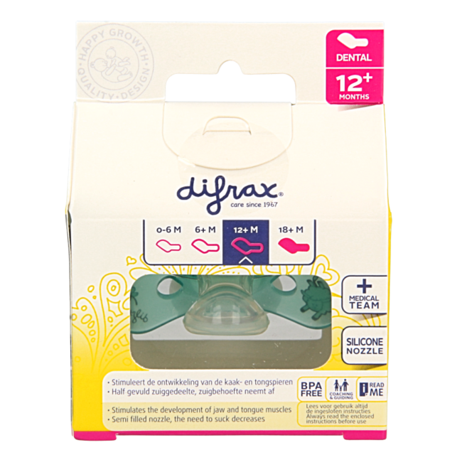 Looking for comfort and development for your little one? The Difrax Dental soother 12+ months provides immediate comfort, stimulates oral development, and glows in the dark. Safe BPA-free silicone. A smart, value-for-money choice for the family, with trusted VitAdvice quality.