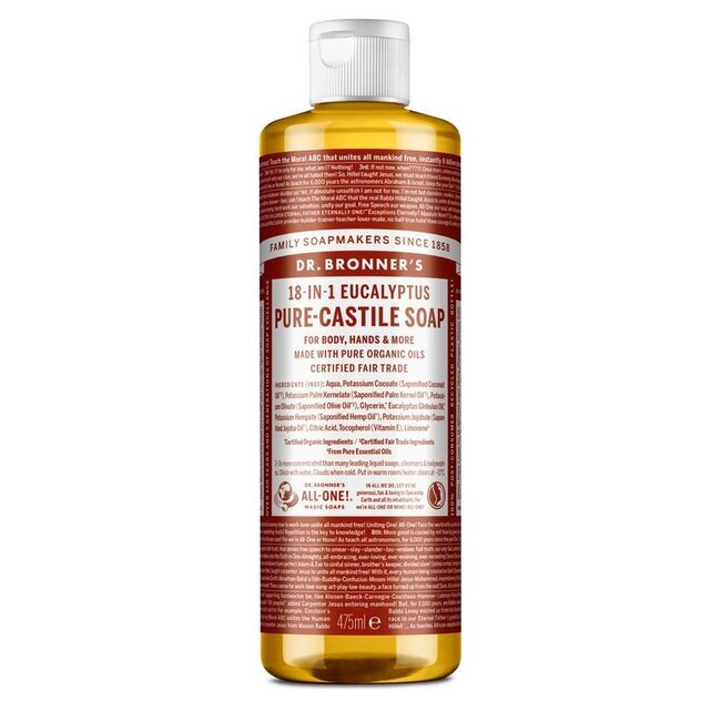 Discover Dr Bronner's Eucalyptus Soap at VitAdvice: organic, fair trade and multi-purpose. Now 30% cheaper and plastic-free. Your smart, trusted choice for healthy skin!