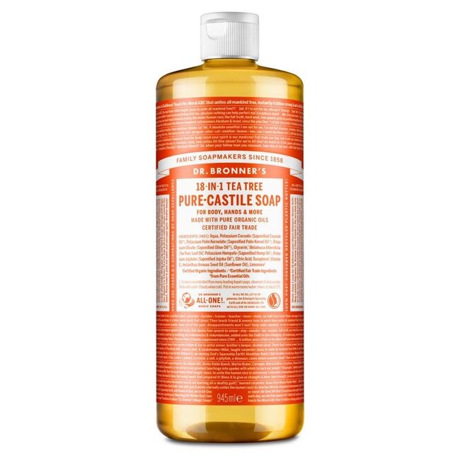 Dr Bronner's Tea Tree soap: the 18-in-1 solution for home and body. Pure, powerful, and suitable for the whole family. Save money with our competitive pricing and choose plastic-free shipping. Expert-backed for your peace of mind.