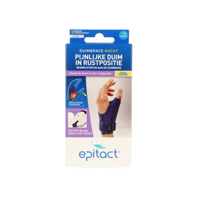 Does thumb osteoarthritis disturb your sleep? The Epitact Night Orthosis Right (M) relieves joint pain, rests your thumb, and limits micro-movements. For comfortable nights and active days. Expert-supported premium care at a fair price. Your smart choice for wellbeing and peace of mind.