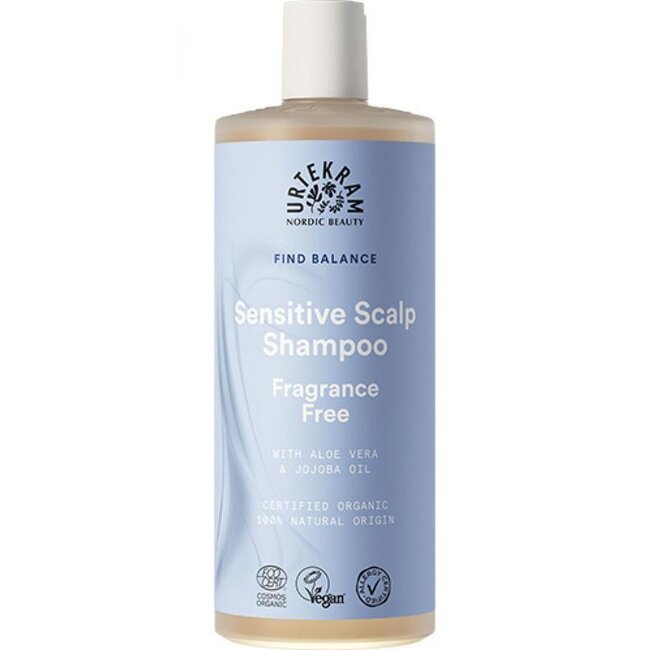 Urtekram Find Balance Fragrance Free Shampoo, with soothing aloe vera, gives your hair a healthy shine. Vegan and Ecocert Organic, for the whole family.