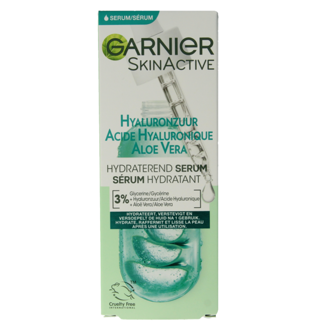 Dull, tight skin? You deserve more. This Garnier serum features 3% hyaluronic acid and aloe vera for instantly soft, hydrated skin. After one month, skin appears plumper and more radiant. Expert-backed, offering a 30% saving and plastic-free packaging. Smart care for the whole family.