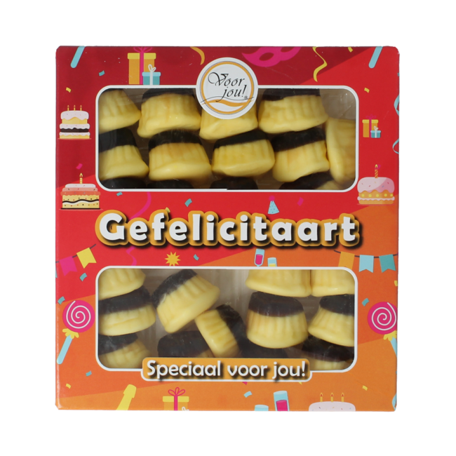 Looking for a gift that truly surprises and tastes delicious? The Gefelicitaart is a beautiful, original sweet gift for any occasion and age. Made with halal gelatine, packaged with sustainability in mind. You're not just giving sweets; you're giving a moment of pure joy and a smart choice for quality. Get that smile now!