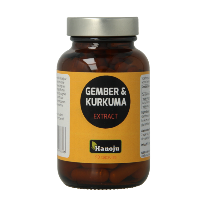 Ginger root (Zingiber officinale) extract, turmeric extract, glazing agent hydroxypropyl methylcellulose.