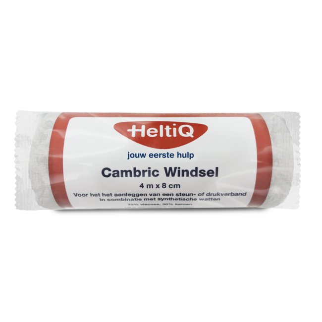 HeltiQ Cambric bandage (4m x 8cm): for quick recovery, security, and maintaining your active life. Firm fixation for joints and swellings. Essential for your family first aid kit. Choose expert-supported quality at a smart price, delivered plastic-free by VitAdvice, your trusted health partner.