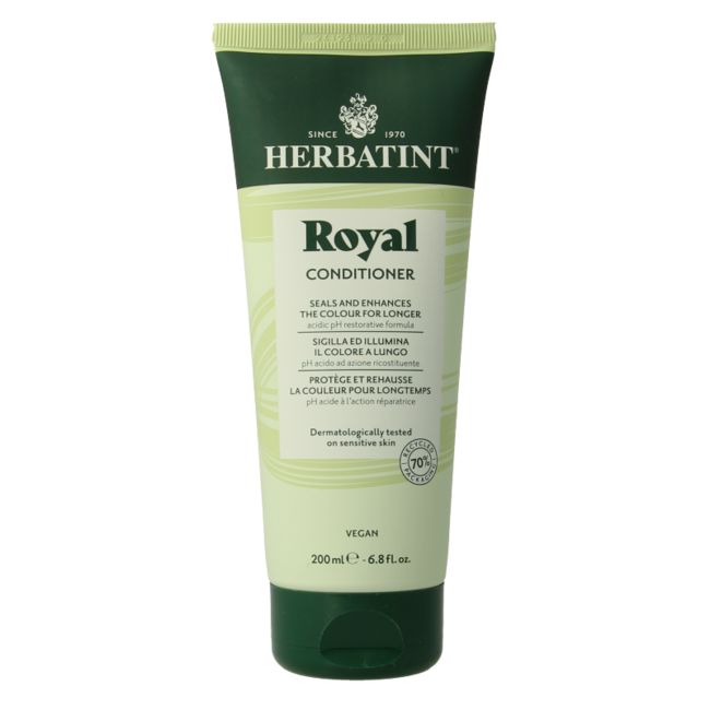 Say goodbye to fast-fading hair colour and a sensitive scalp. Herbatint Royal Conditioner is dermatologically tested, seals in your colour perfectly and provides intensive enrichment.