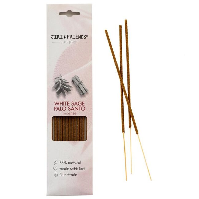 Choose Jiri & Friends Palo Santo/White Sage Incense: 100% natural, handmade, and free from chemicals or charcoal. Enjoy deep relaxation and a safe, purified environment for the whole family.