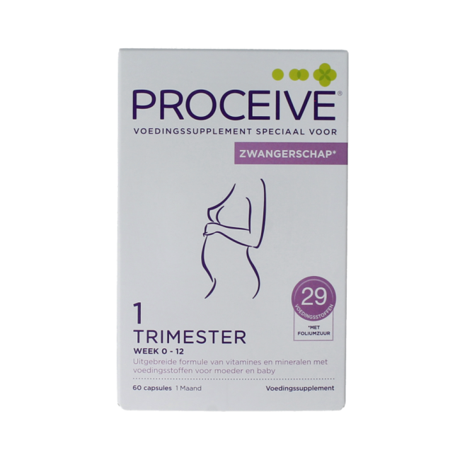 Proceive Kinderwens trimester 1PROCEIVE® Zwangerschap Trimester 1 is speciaal afgestemd voor moeder en baby. PROCEIVE® is een uitgebreide formule met 29 vitamines, mineralen en aminozuren.