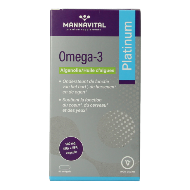 Mannavital Omega-3 Algae Oil PlatinumSupporting your heart and vitality? Mannavital Omega-3 Algae Oil Platinum: expert-backed, pure DHA/EPA. One softgel a day supports normal heart function for the whole family. Feel energised! This is your smart, sustainable choice: premium health for less, delivered plastic-free.