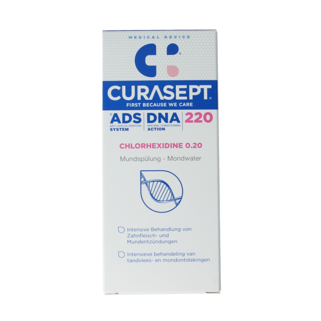 Curasept ADS DNA 220 Mouthwash contains the PVPVA copolymer, which forms a protective film on the teeth and gums and, through a mechanical action, helps relieve symptoms caused by irritation of the oral mucosa. The presence of 0,2% chlorhexidine diglucona Read more.