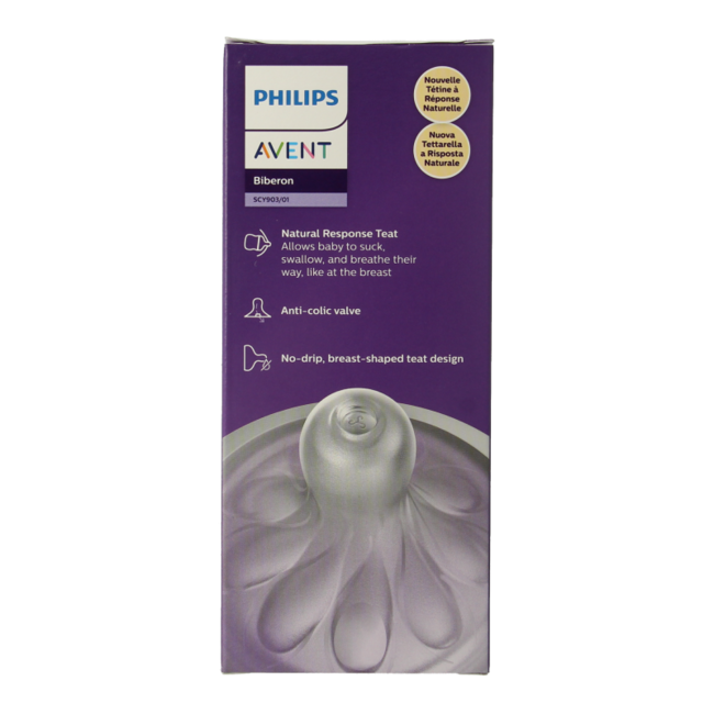 Discover the Avent Natural feeding bottle with the unique Natural Response teat. It is designed with your baby's well-being in mind. The innovative teat mimics the breast and only releases milk when your baby is actively drinking.