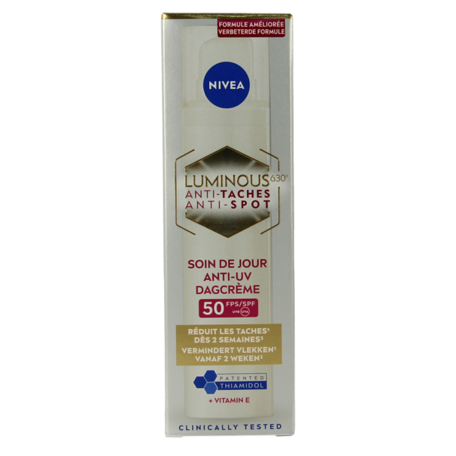 Concerned about pigment spots or dull skin? Nivea Cellular Luminous 630 Day Cream SPF50 targets existing spots, prevents new ones, and protects against sun-induced ageing. Enjoy an even, radiant complexion in just 4 weeks. VitAdvice: your smart choice for premium skincare.