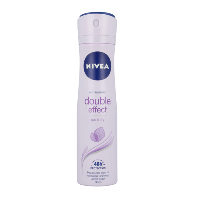 Nivea Double Effect Anti-Perspirant provides 48-hour reliable freshness and silky smooth underarms. Avocado extract helps underarms stay smooth for longer and recover more quickly after shaving. This product is alcohol-free and dermatologically tested.