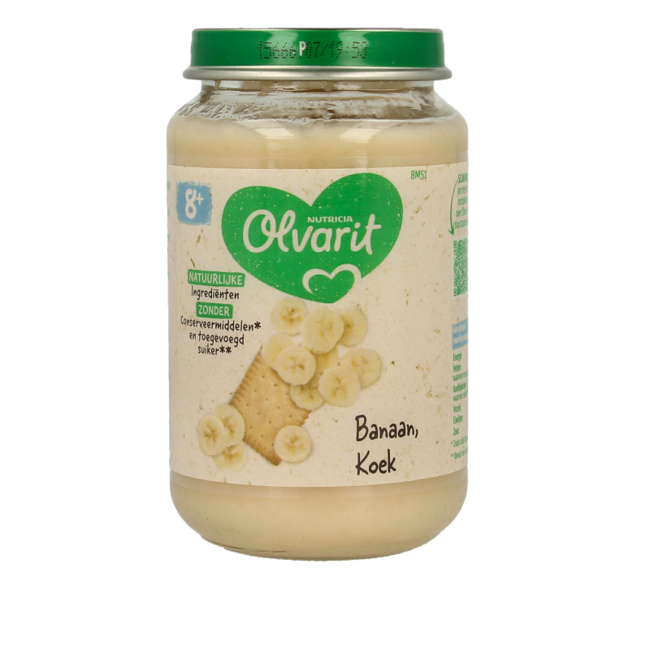 Discover Olvarit Banana Biscuit 8M51, the ideal fruit snack for babies from 8 months. Choose a trusted product that combines the sweet taste of 42% banana and 5% apple with a hint of butter biscuit, specifically tailored to the needs of your growing child. With this carefully composed meal, you provide your baby with a delightful moment and the nutrients they need, without compromising on quality or convenience.
