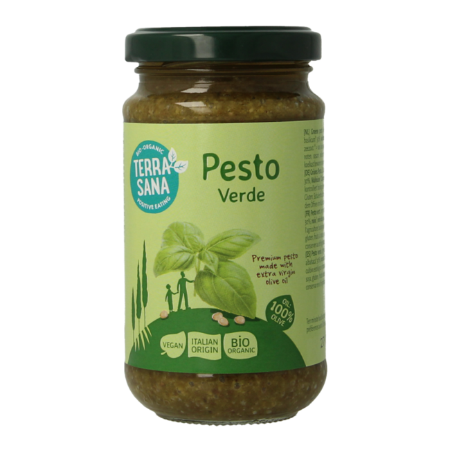 Extra virgin olive oil* 38%, basil*, 30% WALNUTS*, CASHEW NUTS*, pine nuts* 1%, sea salt.