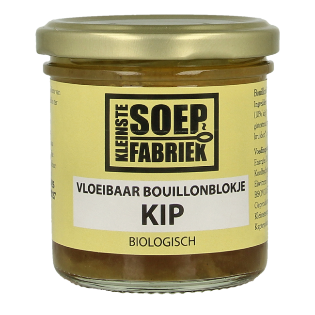 Water, chicken stock* Kleinstesoepfabriek (10% chicken*, carrot*, CELERY*, onion*, parsley*), salt, yeast extract, waxy maize starch*, sunflower oil*, chicken stock*, herbs*, spices*.