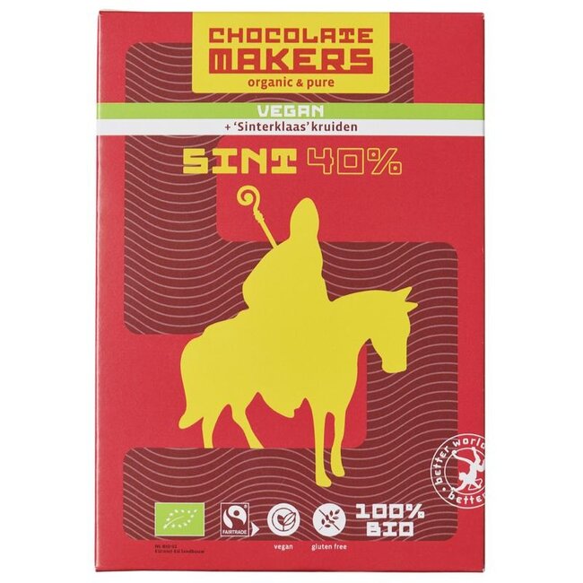 Treat yourself and the environment! Organic 40% vegan chocolate letter with Sinterklaas spices: an irresistibly smooth, spiced treat. Made with emission-free sailing ship beans, solar-powered, and plastic-free. 100% organic and gluten-free. The conscious, delicious choice for the whole family. Enjoy pure chocolate!
