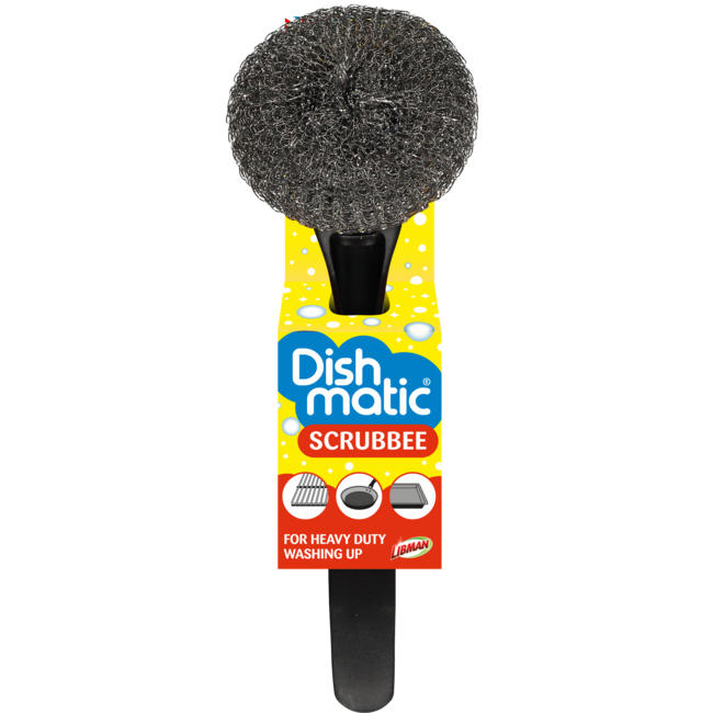Dishmatic Scrubbee staalborstel De Dishmatic staalborstel heeft een solide handvat en een roestvrijstalen schuurkop om barbecues, grillplaten, bakplaten, ovenschalen grondig schoon te maken. Het handvat is compatibel met alle Dishmatic navullingen. De kop is te wisselen tussen een grove schuurspons, krasvrije schuurspons, staalborstel of afwasborstel. Alle Dishmatic producten worden zoveel mogelijk geproduceerd uit recycled plastic.
