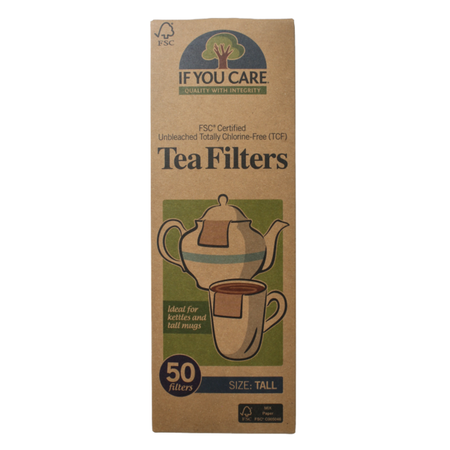 If You Care Theefilters tall If You Care-theefilters zijn gemaakt van ongebleekt, volledig chloorvrij (TCF) papier. Ze zijn perfect voor het zetten van losse thee. If You Care theefilters hebben geen invloed op de smaak van uw thee, ze zijn ontworpen om theeliefhebbers maximaal plezier te geven en tegelijkertijd het milieu zo min mogelijk te belasten.