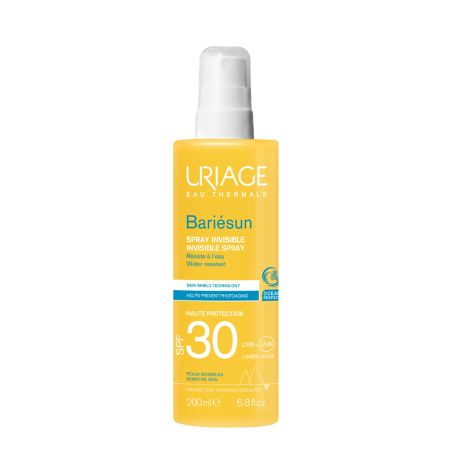 Experience ultimate peace of mind with Uriage Sun Spray SPF30. Thanks to the advanced Skin Shield & [TELOMERES PROTECT] complex, your skin is not only protected against UVA/UVB and blue light, but cell damage and skin ageing are actively prevented.
