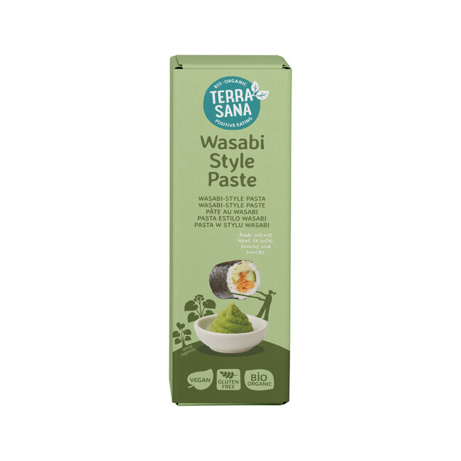 Wasabi style pasta bioDeze wasabi-style pasta is allesbehalve laf. Gemaakt met echte Japanse wasabi en mierikswortel en dus lekker scherp, fris en intens. Precies die pittige kick die je wilt bij sushi, edamame, noedels of in je dips. Geen shoyu, geen alcohol en geen overbodige toevoegingen. De stevige metalen tube zorgt ervoor dat de smaak goed blijft én makkelijk te doseren is. Een beetje is al genoeg. Combineer met sojasaus, plantaardige mayo of citrusdressing voor extra karakter.