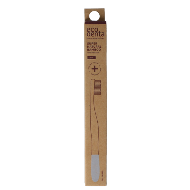 Ecodenta Cepillo de dientes de bambú suave Ecodenta Cepillo de dientes de bambú suave. Con un cabezal pequeño para que se pueda llegar fácilmente a todas las zonas de la boca. Fabricado con bambú moso de cultivo sostenible y respetuoso con los pandas