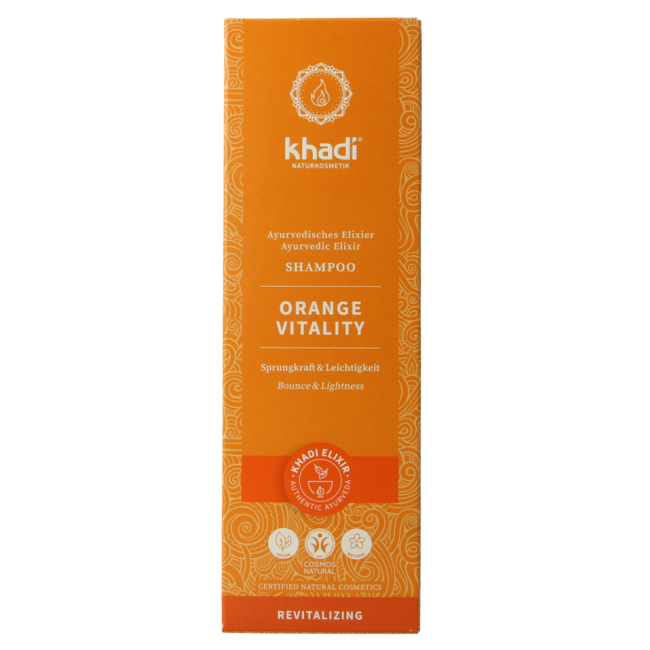 ¿Cabello radiante, vital y asequible? Champú elixir Khadi vitalidad naranja: brillo y vitalidad ayurvédica para toda la familia.