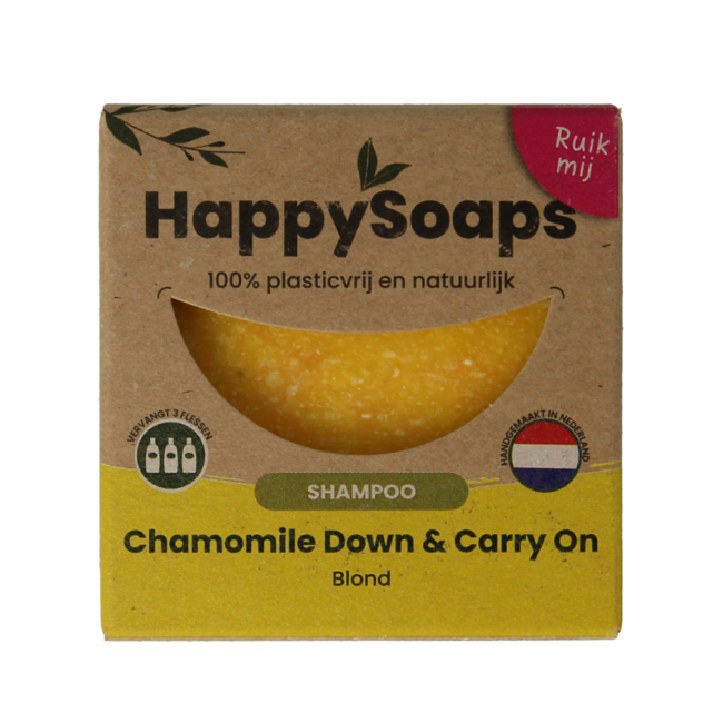 ¿Sufre de cuero cabelludo sensible o cabello apagado? El champú sólido de Happysoaps Manzanilla 'Down & Carry On' (70g) calma, nutre y hace que su cabello brille. Con manzanilla, quinoa y manteca de karité, es perfecto para cabello rubio/sensible y para toda la familia. Disfrute de un cuidado premium por un 30% menos, entregado sin plásticos. ¡Elija inteligentemente con VitAdvice para un confort vital!