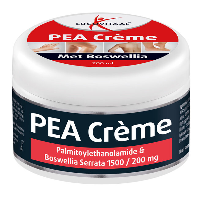 La crema de PEA Lucovitaal contiene 1500 mg de Palmitoiletanolamida (PEA) y 200 mg de Boswellia Serrata por cada 100 ml. El PEA es una sustancia endógena (producida por el propio cuerpo). Esta crema de PEA se puede combinar con las cápsulas de PEA Lucovit Leer más.