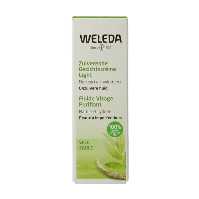 Descubra la Crema facial purificante ligera de Sauce de Weleda. Esta crema ligera 100% natural es su mejor aliada. Proporciona hidratación duradera, matifica y ayuda a reducir y prevenir las imperfecciones de forma eficaz. Observe cómo disminuyen los granos y puntos negros, mientras su piel se siente más fresca, uniforme y confortable. Sin brillos, solo un aspecto natural y cuidado.