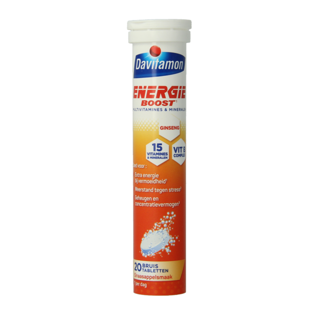 ¿Cansancio o falta de concentración? Los comprimidos efervescentes Davitamon Energía Boost Ginseng, desarrollados por expertos, le aportan a usted y a su familia energía, concentración y resistencia al estrés. Calidad superior, precio inteligente y envío sin plásticos. Elija VitAdvice para su vitalidad.