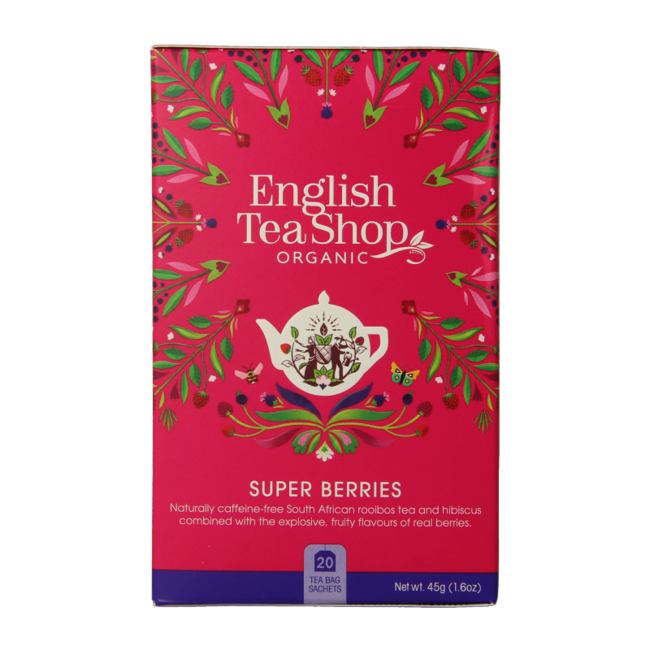 ¿Busca una infusión pura y afrutada? English Tea Shop Superberries bio: 20 bolsitas ecológicas con hibisco, arándanos y fresas. Disfrute de una infusión vibrante, seleccionada por expertos para toda la familia. Económico y sin plástico a través de VitAdvice. ¡Pruébela ahora!