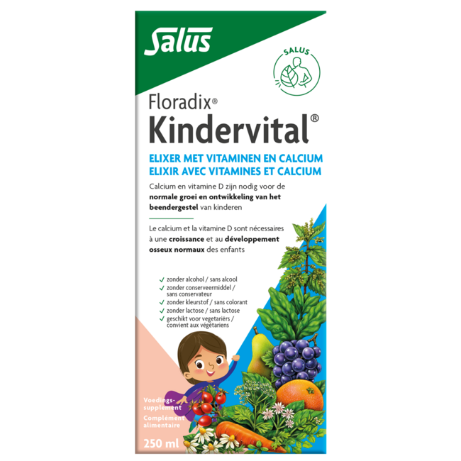 Usted desea que su hijo crezca sano y lleno de energía, pero a veces faltan los nutrientes necesarios para el crecimiento. Esto puede afectar al desarrollo normal de los huesos. Salus Floradix Kindervital ofrece la solución con un multivitamínico líquido específicamente adaptado para niños a partir de 3 años. Donde antes las vitaminas eran una lucha diaria, este sabroso elixir garantiza ahora una rutina vital y sin preocupaciones. <\/p>