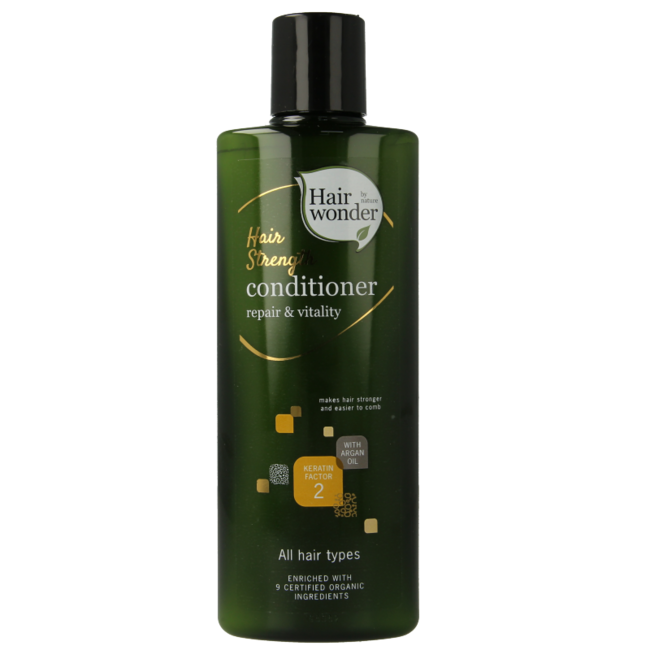 ¿Tiene el cabello débil y sin vida? Hairwonder Hair Strength Conditioner lo transforma. Su cabello se vuelve más fuerte, brillante y resistente. Con queratina, aceite de argán y la experiencia de VitAdvice. Calidad superior para la familia, un 30% más económico y sin plásticos. Elija un cabello vital.